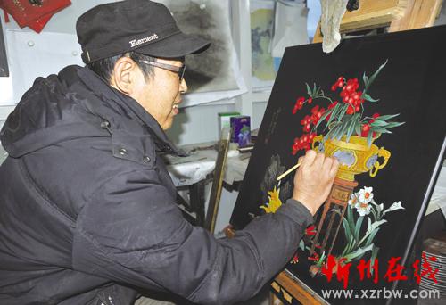 工藝技師在制作推光漆畫