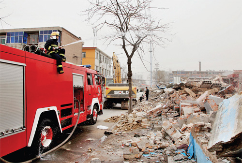 忻府區(qū)安排消防隊及時為拆遷工作降塵灑水