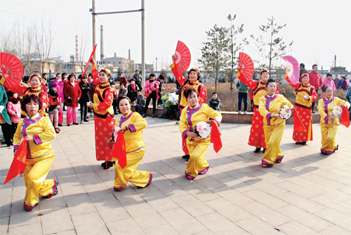 3月8日,原平市北城街道城西社區(qū)舉辦了為“冬季行動喝彩”歌舞聯(lián)歡。該市各支舞蹈隊(duì)匯集該社區(qū)活動中心,表演了她們的拿手節(jié)目。活動現(xiàn)場,豐富多變的造型、神采飛揚(yáng)的舞姿,充分展示了原平市勞動?jì)D女的風(fēng)采。圖為社區(qū)舞蹈隊(duì)正在演出《“冬季行動”就是好》節(jié)目。(褚震 攝)