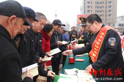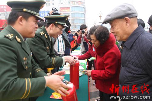 3月15日,原平市開(kāi)展了“3.15國(guó)際消費(fèi)者權(quán)益日”宣傳咨詢服務(wù)活動(dòng)?!岸拘袆?dòng)”開(kāi)展以來(lái),該市組織消防、藥品等有關(guān)部門(mén)工作人員開(kāi)展以“新消費(fèi) 我做主”為主題多種形式的宣傳咨詢服務(wù),設(shè)立了咨詢臺(tái)、打擊非法集資等展示臺(tái),接受群眾咨詢,并發(fā)放各種宣傳材料十萬(wàn)余份,提高消費(fèi)者法制法規(guī)和知假辯假的能力。圖為消防工作人員向消費(fèi)者講解如何識(shí)別偽劣滅火器。(褚震 攝)