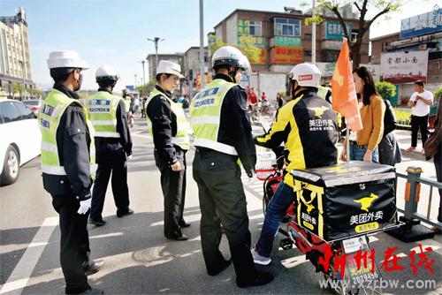 4 月18 日,市公安局交警支隊組織直屬大隊民警在城區(qū)主要街道進行電動車交通違法整治,并勸導騎電動車的市民在出行時,切記安全,各行其道,遵守交通規(guī)則。圖為查處現場。(張軍 攝影報道)