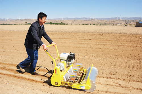 5 月14 日上午,位于繁峙縣金山鋪鄉(xiāng)郝家灣村的海豐農(nóng)場的谷子試驗田里,山西農(nóng)業(yè)大學教授郭平毅正在為村民們演示韓國產(chǎn)小籽粒播種機的操作要領。山西農(nóng)業(yè)大學開展“送技術下基層”活動,他們?yōu)楹XS農(nóng)場送來了2 臺韓國產(chǎn)小籽粒播種機。(喬偉 攝)