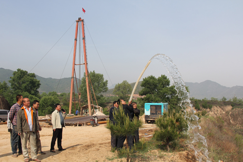 千百年來“吃水靠下雨、種地旱死?!钡奈迮_縣茹村鄉(xiāng)東茹村“干南院山”, 如今由“云祥苗木種植專業(yè)合作社” 從五臺農(nóng)商銀行茹村支行貸款20萬元、自籌35萬元,歷時(shí)25天,打出了第一眼350米深的巖層水,每小時(shí)流量為21立方米。為1.29萬畝山地、700畝耕地,以及擬建的“五臺寶福源愛心養(yǎng)生養(yǎng)老示范基地” 解決了飲用水問題。(金俊賢 鄭光 攝)