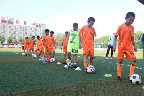 8月9日,在原平市農業(yè)學校體育場,暑期足球培訓班的孩子們正在進行足球基本功訓練。近年來,原平市“足球進校園”體育活動基本覆蓋城鄉(xiāng)中小學,場地、設施等得到進一步完善,為兒童在家門口圓足球夢打開了方便之門。(褚震 攝)