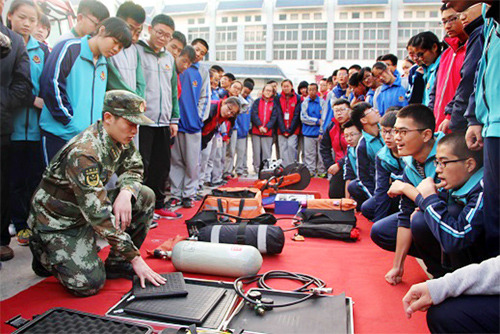 此次演練活動分四個階段:消防安全知識培訓、人員疏散逃生、初期火災撲救、特種消防器材展示?;顒蝇F(xiàn)場,消防官兵講解、演示了發(fā)生火災時應如何疏散逃生、如何撲救初起火災、滅火器的使用方法及注意事項等與師生們息息相關的消防安全知識,提高了大家自防自救意識,學校師生代表還親自體驗了如何使用干粉滅火器滅火,了解了初期火災的撲救方法。