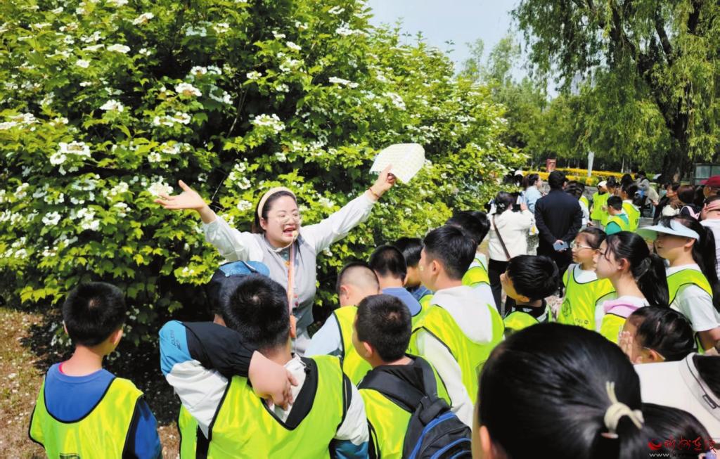 初夏時節(jié),忻府區(qū)花開正艷、氣候宜人,孩子們走出校園,開啟了一場別開生面的研學之旅,在大自然中增長知識、收獲成長。活動中,孩子們在老師的帶領(lǐng)下,了解本地植物種類和生態(tài)鏈相關(guān)知識,認真填寫研學手冊。圖為5月10日,參加研學活動的學生在人民公園聽老師講解植物特性。 (記者 張存良攝)