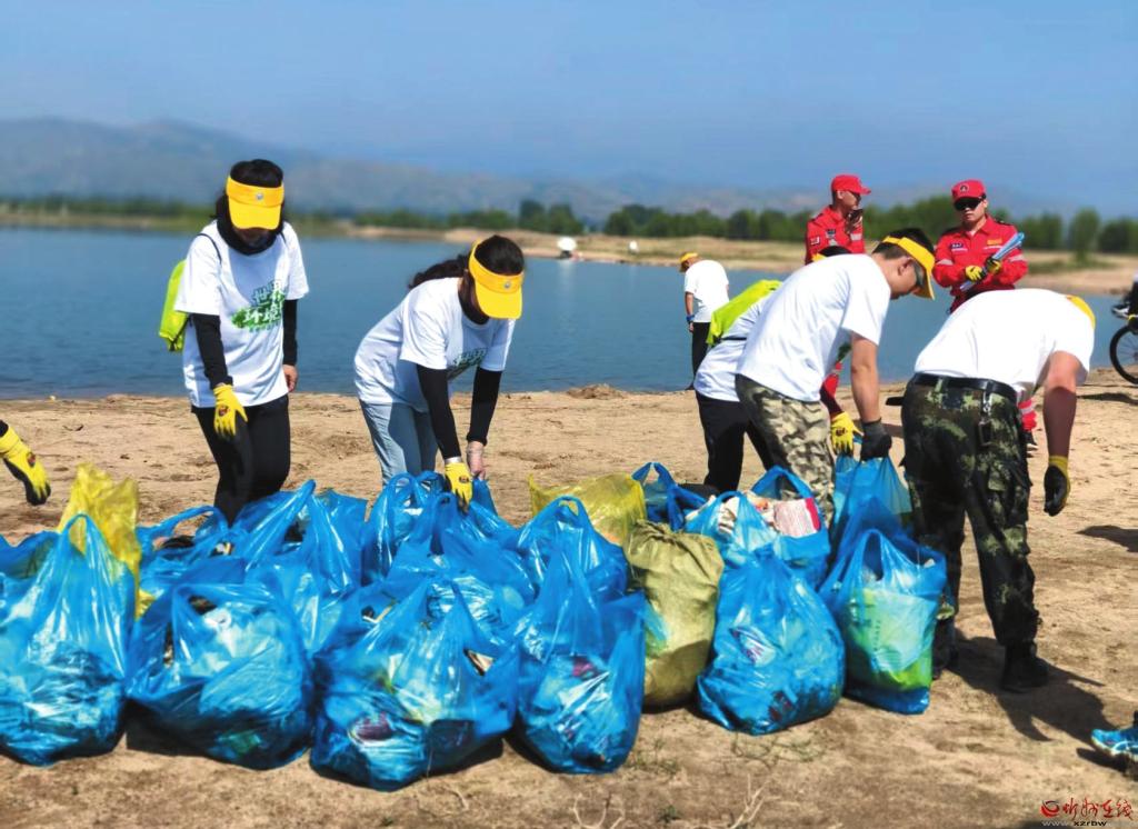 活動(dòng)開(kāi)始,志愿者們騎自行車(chē)從房車(chē)營(yíng)地出發(fā),沿云中河騎行道一路抵達(dá)奇村鎮(zhèn)雙乳湖風(fēng)景區(qū),在雙乳湖周邊開(kāi)展垃圾收撿志愿服務(wù)活動(dòng)。志愿者們兩兩一組,將塑料、玻璃、金屬等不易降解的垃圾分類(lèi)收集,用木棍、繩索等工具打撈并分類(lèi)收撿湖邊水里的塑料袋、魚(yú)網(wǎng)、塑料瓶等,向景區(qū)游客宣傳了“美麗中國(guó)我先行”的環(huán)境保護(hù)理念,號(hào)召大家用實(shí)際行動(dòng)踐行環(huán)境保護(hù)?;顒?dòng)結(jié)束后,30余名志愿者騎行返回出發(fā)點(diǎn),以低碳環(huán)保的方式向沿途游客宣傳世界環(huán)境日生態(tài)保護(hù)理念。