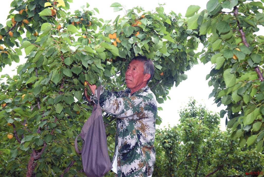 漫山杏黃綴枝頭。近日,定襄縣橫山村龍山莊園迎來杏子豐收季。金燦燦的杏果掛滿枝頭,果香四溢。果農(nóng)穿梭林間,使用“采摘神器”摘取成熟的果實(shí),臉上洋溢著豐收的喜悅。(郭彥蘭 攝)