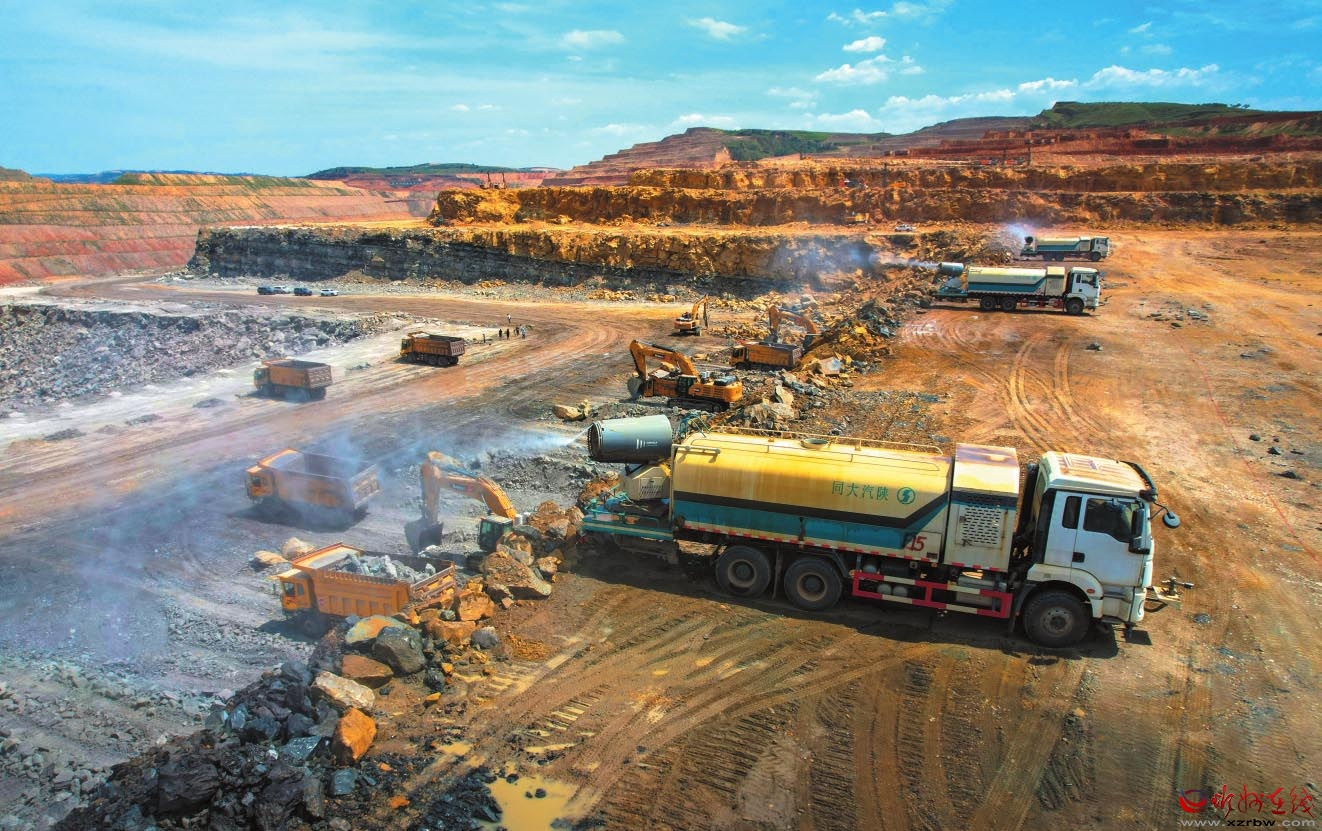走進(jìn)礦區(qū),記者看到:采場邊,一臺霧炮車正“突突”作響,白色水霧精準(zhǔn)覆蓋挖掘區(qū)域;運(yùn)輸?shù)郎?,限?0公里的標(biāo)識醒目,兩臺濕掃車來回穿梭,所過之處路面水潤無塵;爆破作業(yè)區(qū),抑塵車同步啟動,水幕裹著炸起的碎石“溫柔落地”……