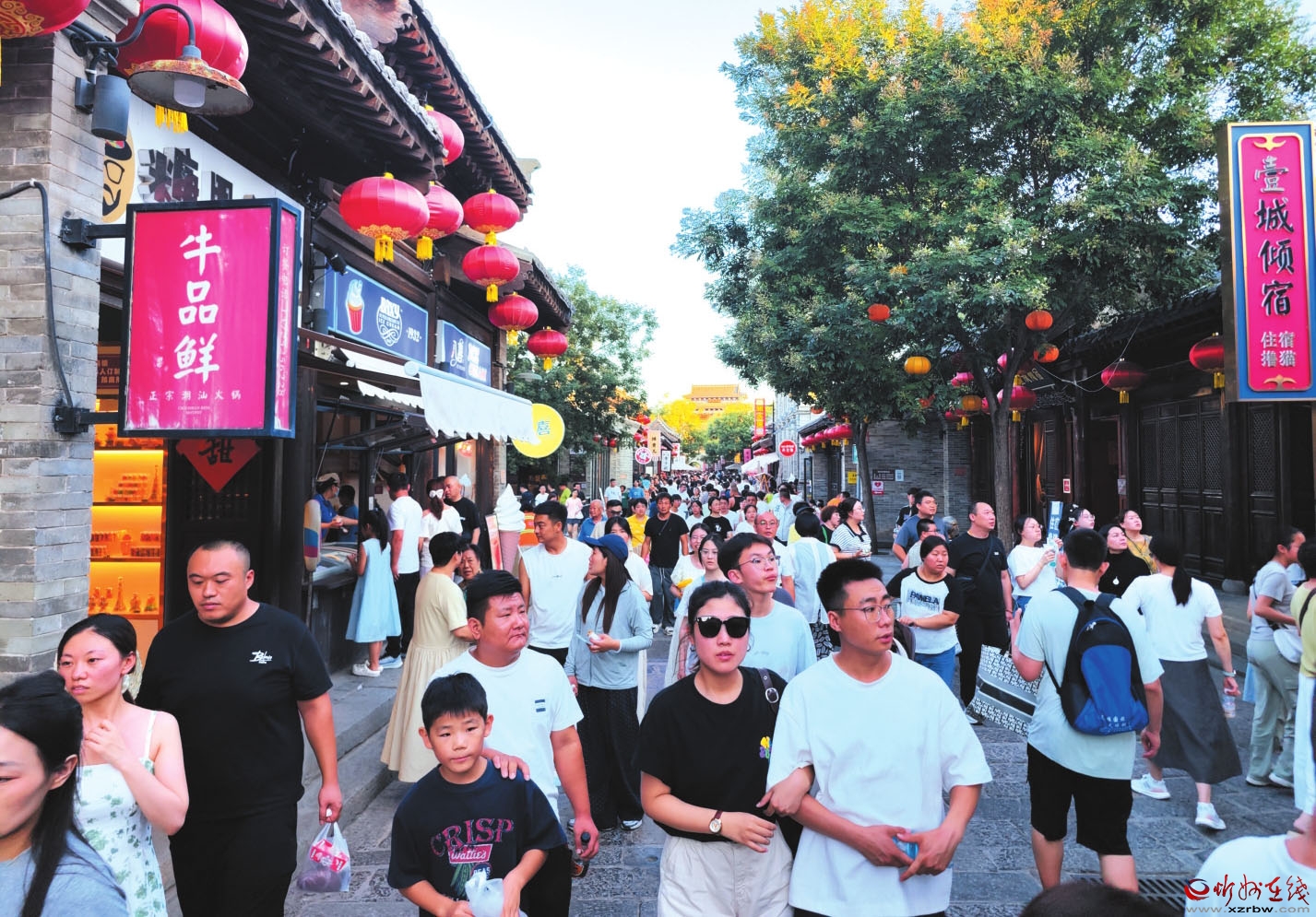 眼下正值暑期旅游旺季,文旅市場消費旺盛。圖為游客在忻州古城景區(qū)游玩。 (