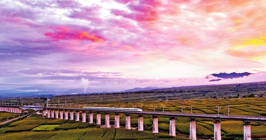 鐵路部門充分發(fā)揮高鐵運(yùn)輸優(yōu)勢(shì),針對(duì)客流需求,采取動(dòng)車組重聯(lián)、增開(kāi)周末高峰線列車等方式,持續(xù)完善運(yùn)輸服務(wù)舉措,全面提升旅客出行的便捷性與舒適度。圖為夕陽(yáng)下駛向雁門關(guān)站的動(dòng)車組列車。(王晉東攝)