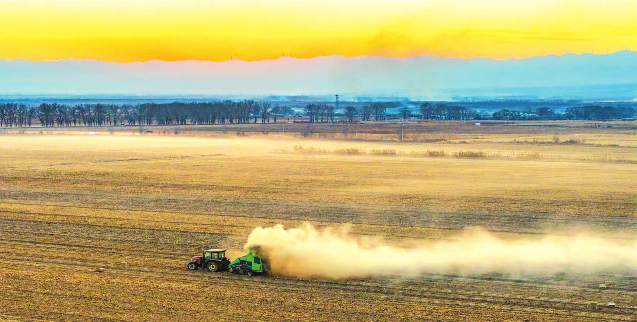 11月24日,原平市中陽鄉(xiāng)大狼溝村的村民們正忙碌地將玉米秸稈打捆歸集。近年來,原平市大力推進秸稈回收利用,將玉米秸稈轉(zhuǎn)化為飼料、燃料、纖維原料,不僅有效避免了因秸稈廢棄或焚燒導(dǎo)致的環(huán)境污染,也為養(yǎng)殖戶降低了飼養(yǎng)成本,拓寬了增收渠道。(王晉東攝)