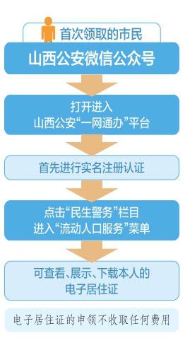 首次領(lǐng)取的市民,只需打開(kāi)山西公安微信公眾號(hào)進(jìn)入山西公安“一網(wǎng)通辦”平臺(tái),實(shí)名注冊(cè)認(rèn)證后,點(diǎn)擊“民生警務(wù)”欄目,進(jìn)入“流動(dòng)人口服務(wù)”菜單,即可查看、展示、下載本人的電子居住證。電子居住證的申領(lǐng),不收取任何費(fèi)用。記者看到,“一網(wǎng)通辦”平臺(tái)里的電子居住證登載了流動(dòng)人口的姓名、性別、民族、人像、公民身份號(hào)碼、戶籍所在地、現(xiàn)居住地址、有效期限等信息,并新增了二維碼核驗(yàn)信息。