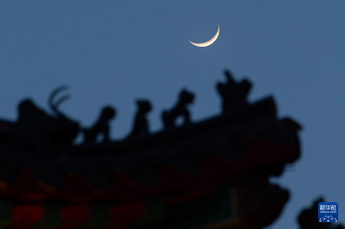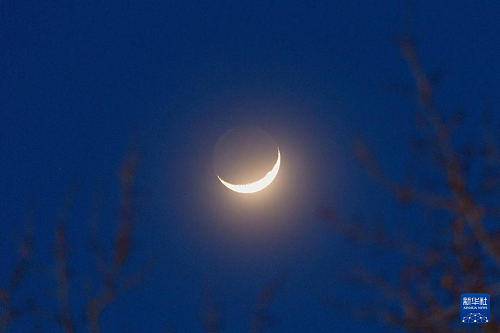 4月1日在黑龍江省北安市拍攝的“年度最大蛾眉月” 。(新華社發(fā) 錢泊羽 攝)
