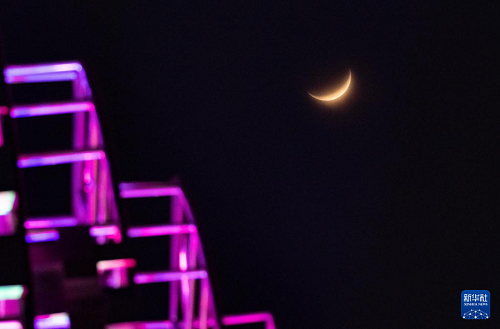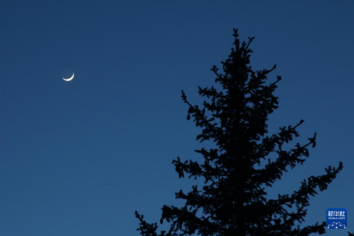 4月1日在黑龍江省大興安嶺地區(qū)加格達奇區(qū)拍攝的“年度最大蛾眉月” 。(新華社發(fā) 譚雪松 攝)