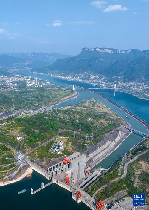 4月8日在湖北省宜昌市秭歸縣拍攝的三峽大壩(無(wú)人機(jī)照片)。(新華社發(fā) 王罡 攝)