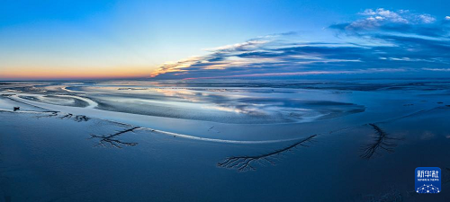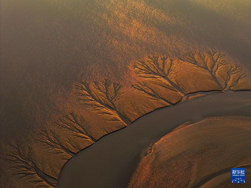 這是2024年10月29日在鹽城市東臺條子泥濕地拍攝的“潮汐樹”(無人機照片)。(新華社記者 李博 攝)