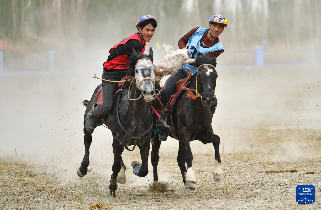 4月12日,村民在新疆于田縣先拜巴扎鎮(zhèn)農(nóng)牧民運動場參加叼羊比賽。(新華社記者 胡虎虎 攝)