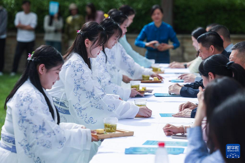 4月16日,人們在茶文化主題活動現(xiàn)場品嘗春茶。(新華社記者 徐昱 攝)