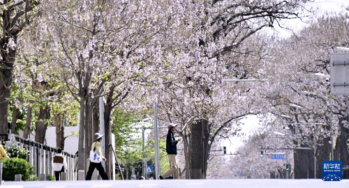 4月17日拍攝的泡桐花盛開(kāi)的宏達(dá)路。(新華社記者 李欣 攝)