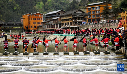 3月31日,農(nóng)歷三月初三,廣西桂林市龍勝各族自治縣龍脊鎮(zhèn)黃洛瑤寨舉行“長發(fā)節(jié)”,瑤族婦女身著傳統(tǒng)服飾展示“長發(fā)梳妝”。(新華社發(fā) 潘志祥 攝)