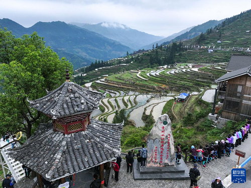 4月26日,2025年貴州省從江縣加榜梯田“開秧門”暨首屆加榜“T”田秀活動舉行,通過“開秧門”春耕儀式、傳統(tǒng)農(nóng)耕文化展示、梯田走秀等活動,展示當(dāng)?shù)毓爬系霓r(nóng)耕文化和絢麗多彩的民族服飾。