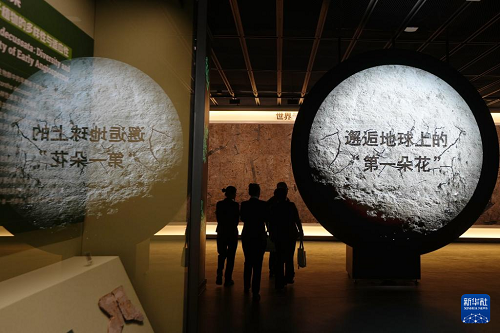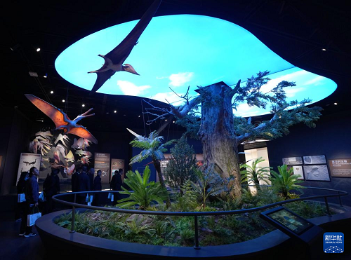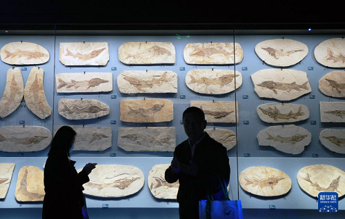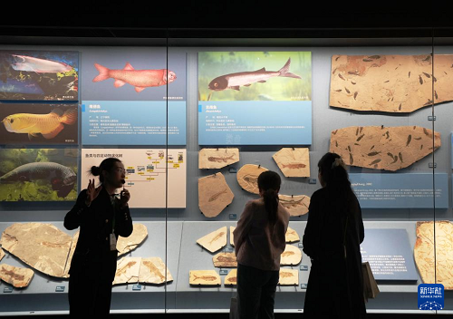 4月27日,游客在遼寧朝陽(yáng)古生物化石博物館內(nèi)參觀。(新華社記者 李鋼 攝)