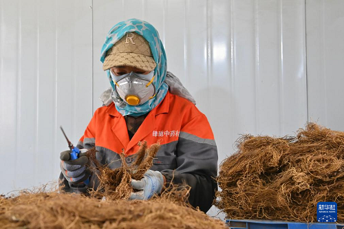 5月14日,在遼寧省撫順市新賓滿族自治縣,一名工人在車間內(nèi)加工遼細辛。(新華社記者 吳青昊 攝)