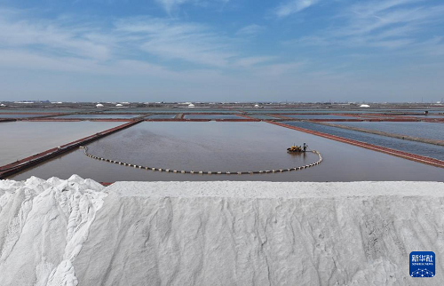 近日,河北省唐山市曹妃甸區(qū)南堡鹽場的35萬畝鹽田迎來春鹽收獲期,工人利用晴好天氣加緊收獲,鹽田里到處是繁忙工作景象。據(jù)介紹,南堡鹽場是我國長蘆鹽區(qū)海鹽生產(chǎn)基地之一,當(dāng)?shù)匾劳宣}資源豐厚優(yōu)勢,大力發(fā)展鹽化工產(chǎn)業(yè),助推經(jīng)濟發(fā)展。