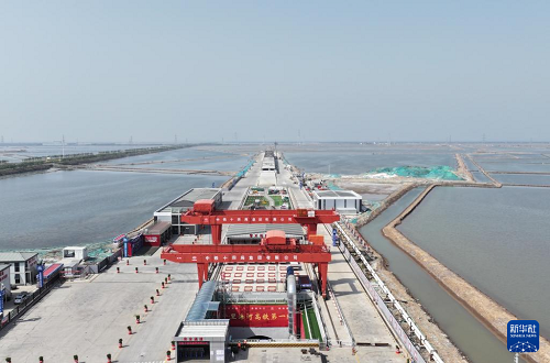 5月19日拍攝的津?yàn)H高鐵津沽海河隧道盾構(gòu)工區(qū)(無人機(jī)照片)。(新華社記者 李然 攝)