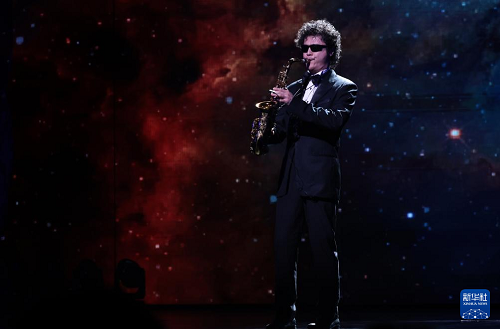 5月28日,演員表演薩克斯獨奏《你鼓舞了我》。(新華社記者 方喆 攝)