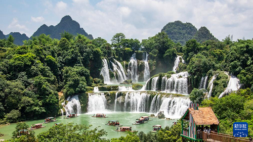 6月1日,游客在廣西崇左市大新縣德天瀑布景區(qū)游覽。(新華社發(fā) 趙京武 攝)