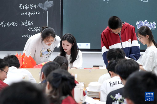 6月4日,四川省納溪中學的老師在為高三學生答疑解惑。新華社發(fā)(廖勝春 攝)