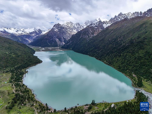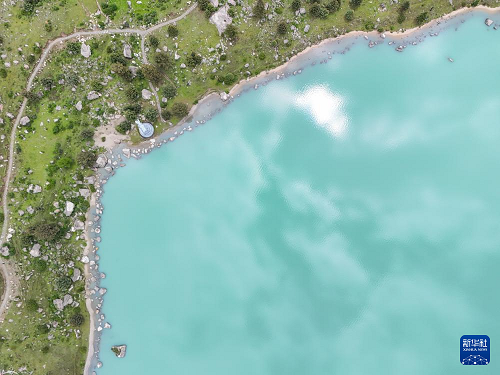 這是6月21日拍攝的玉龍拉措風(fēng)光(無人機(jī)照片)。(新華社記者 王曦 攝)
