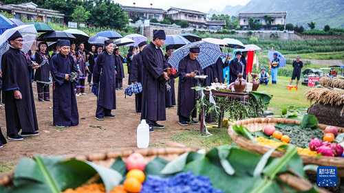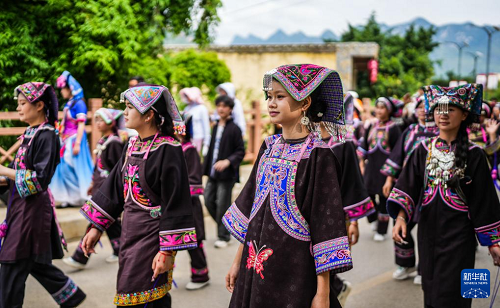 六盤水市六枝特區(qū)牂牁鎮(zhèn)的布依族群眾在進(jìn)行巡游(6月29日攝)。(新華社記者 陶亮 攝)