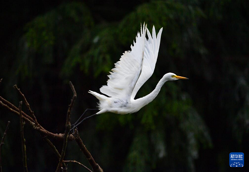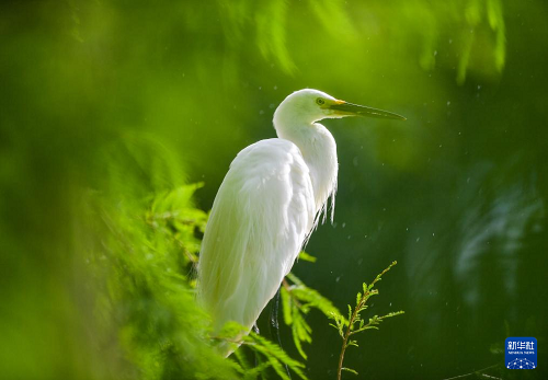 這是7月7日在昆明滇池海洪濕地公園拍攝的白鷺。(新華社記者 陳欣波 攝)