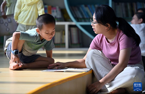 8月3日,小朋友在位于海口市的海南省圖書館讀書。(新華社記者 郭程 攝)