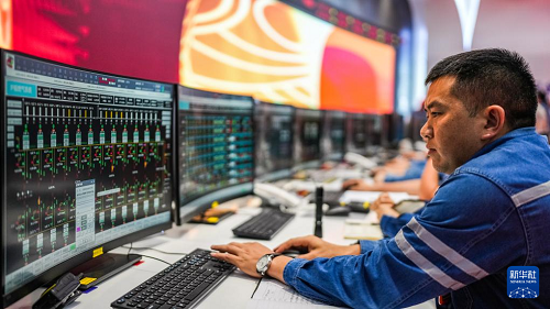 工作人員在國家電投貴州金元平遠電廠查看發(fā)電設施運轉(zhuǎn)情況(8月5日攝)。(新華社記者 陶亮 攝)