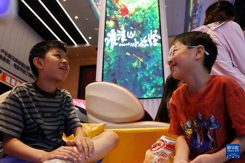 8月17日,小朋友在浙江省嘉興市南湖區(qū)一家影城等候觀影。(新華社發(fā) 金鵬 攝)