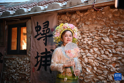 蟳埔村位于福建泉州灣晉江入海口,是古代海上絲綢之路重要起點(diǎn)之一,已有千年歷史。蟳埔女簪發(fā)戴花的古老民俗被稱為“簪花圍”?!棒⒒▏庇苫▏c發(fā)簪組成,骨制的發(fā)簪和用玉蘭、山茶、菊花等鮮花制作的花圍,隨四季時(shí)令與個(gè)人喜好,成為蟳埔女生活中不可或缺的元素。2008年,以“簪花圍”為代表的蟳埔女習(xí)俗被列入第二批國(guó)家級(jí)非遺名錄。