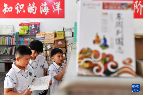 8月25日,山東省青島市城陽(yáng)區(qū)夏莊小學(xué)學(xué)生在選購(gòu)學(xué)習(xí)輔助書(shū)籍。(新華社發(fā) 王海濱 攝)