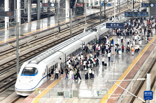 8月31日,旅客在江蘇常州火車(chē)站乘車(chē)出行(無(wú)人機(jī)照片)。(新華社發(fā) 陳暐 攝)