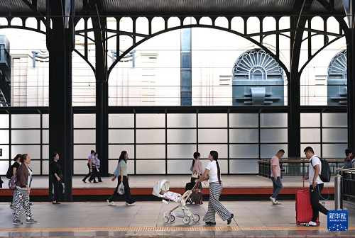 8月31日,旅客從哈爾濱火車(chē)站出站。(新華社發(fā) 原勇 攝)