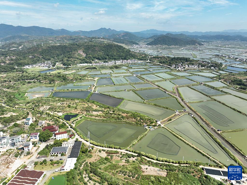 鳥瞰寧??h一市鎮(zhèn)的蟹塘(9月2日攝,無人機照片)。(新華社記者 翁忻旸 攝)