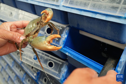 9月2日,在寧海縣一市鎮(zhèn)的一家青蟹生產(chǎn)企業(yè),工作人員在暫儲青蟹的“蟹公寓”中查看其健康狀態(tài)。(新華社記者 翁忻旸 攝)