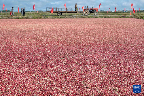 9月21日,“慶農(nóng)業(yè)豐收 享美好生活”蔓越莓豐收節(jié)在我國“東極”黑龍江撫遠市舉行,4200畝的撫遠市蔓越莓種植基地迎來采收季。