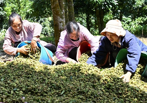9月22日,云南省文山壯族苗族自治州馬關縣木廠鎮(zhèn)老房子村的農(nóng)民在分選剛摘下的八角。(新華社發(fā) 熊平祥 攝)
