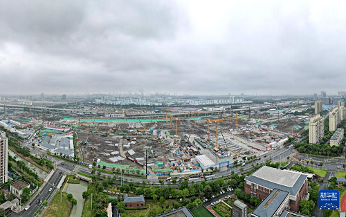 這是10月16日拍攝的建設(shè)中的上海寶山站(無(wú)人機(jī)照片)。(新華社記者 方喆 攝)