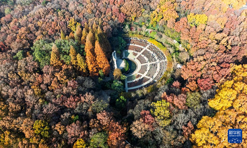 11月30日拍攝的江蘇南京鐘山風景名勝區(qū)音樂臺初冬景觀(無人機照片)。(新華社發(fā) 孫忠南 攝)