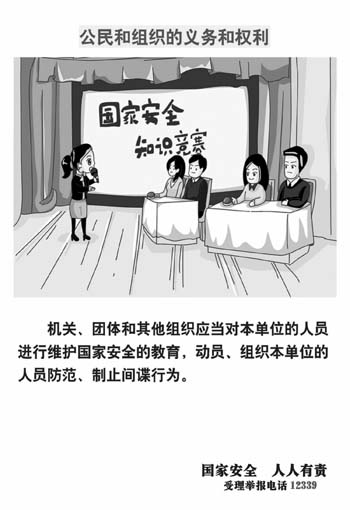 4月15日是《國(guó)家安全法》頒布實(shí)施以來(lái)的第二個(gè)“全民國(guó)家安全教育日”。為進(jìn)一步提高全民國(guó)家安全意識(shí),增強(qiáng)全民國(guó)家安全責(zé)任,努力構(gòu)建反奸防諜人民防線“鋼鐵長(zhǎng)城”,本報(bào)特推出國(guó)家安全教育系列宣傳內(nèi)容,希望廣大人民群眾自覺(jué)踐行法定權(quán)責(zé),不斷提升維護(hù)國(guó)家安全利益的自覺(jué)性,樹(shù)立嚴(yán)格保密意識(shí),積極支持和協(xié)助國(guó)家安全機(jī)關(guān)開(kāi)展工作,為維護(hù)國(guó)家安全和社會(huì)政治穩(wěn)定傾注熱情、貢獻(xiàn)力量。